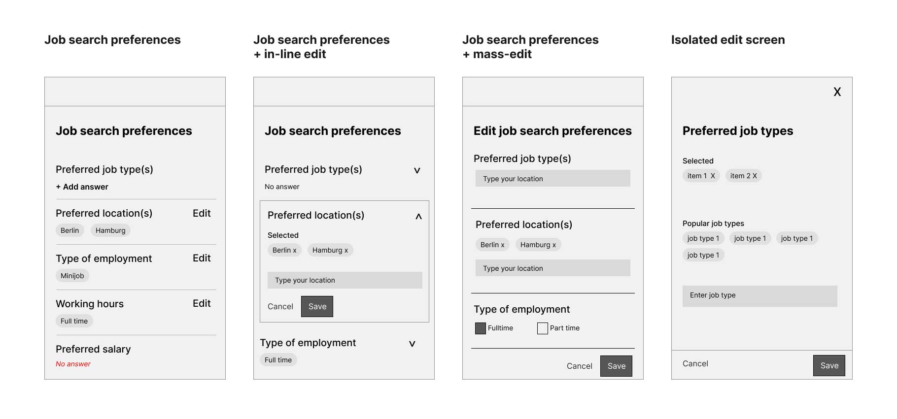 We realised after subsequent user tests, that the profile was not suited for very broad searchers- for Eg. People who don't care what kind of job it is as long as it is a part time job in Berlin.